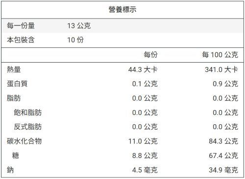 【營養標示】: