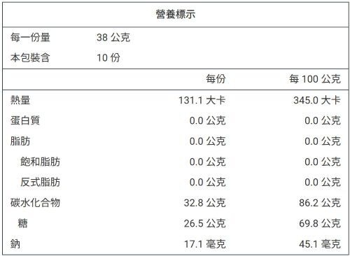 主要成分:砂糖、麥芽糖、草莓濃縮果汁、葡萄濃縮果汁、甘油、D-山梨醇液70%(甜味劑)、鹿角菜膠、檸檬酸、檸檬酸鈉、香料、天然色素(梔子紅、花青素)
